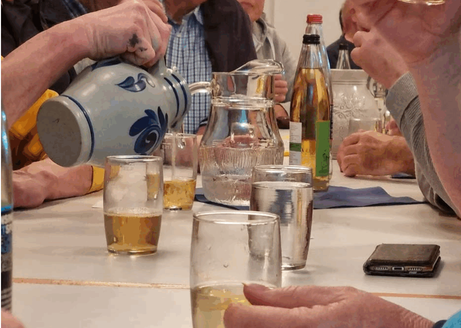 Bei lustigen Gesprächen, einem ordentlichen Vesper, Informationen zum Most und „Lumpa-Liadla“ verbringen wir jedes Frühjahr einen lustigen Abend. um die jeweils letztjährigen Früchte zu probieren.